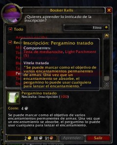 Respecto a las profesiones, aparte de aumentar el nivel máximo y las recetas, se ha añadido una profesión nueva, la Inscripción. Es una profesión de